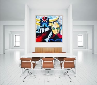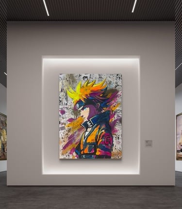 Ma technique de peinture au couteau apporte du relief, de la matière, et une vraie énergie à chaque œuvre. J’aime aussi y intégrer des collages de mangas et de BD, pour enrichir la texture et créer un dialogue entre la peinture et la narration visuelle. Chaque toile est conçue comme une célébration de l’icône représentée, dans une esthétique forte, moderne et expressive.